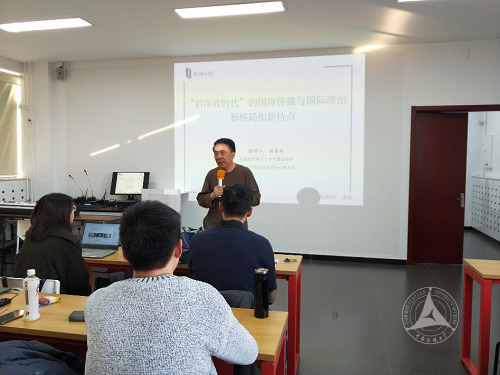 洪俊浩教授此次带来了题为“‘后冷战时代’的国际传播与国际政治:新格局和新特点”讲座。洪教授首先以互动提问的方式明确了国际传播领域,接着以一战为起点,对国际传播的起源和历史进行了分析。此外,他介绍了当下新的传播格局,并以CNN和CGTN的移动端为例,说明新媒体的介入对国际传播内容产生的影响。他剖析了中国在国际传播领域面临的两大挑战,一是语种范围狭窄,二是话语权分量轻。
