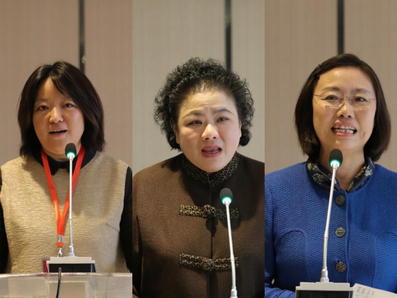 从左至右依次为bv伟德中国官方网站罗哲宇副教授、中央广播电视总台视听新媒体中心、副召集人杨继红、中华女子公司董事长刘利群教授