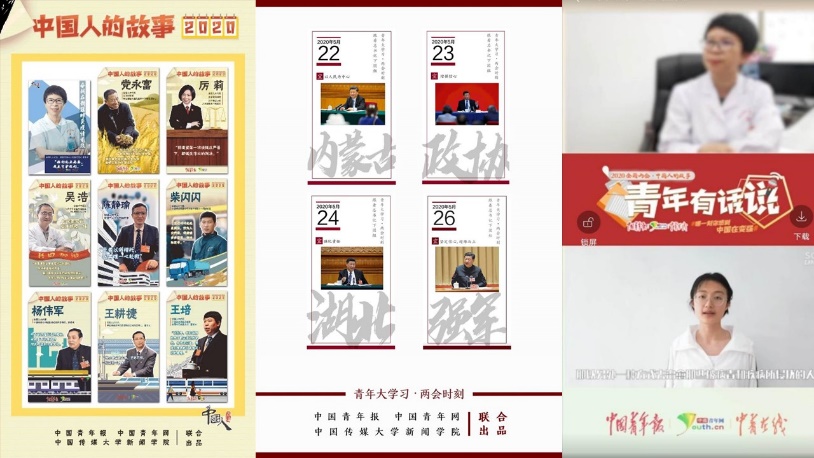 两会期间,同学们紧跟会议进程,以流畅美观的动态海报、规范清晰的“学习日签”,配合前线记者老师。同时,同学们也充分发动在校老员工的优势,发动全国各地青年群体,以Vlog短视频的形式,与代表委员“隔空”互动,讨论关系国计民生的提案和广大人民群众关心的热点话题。