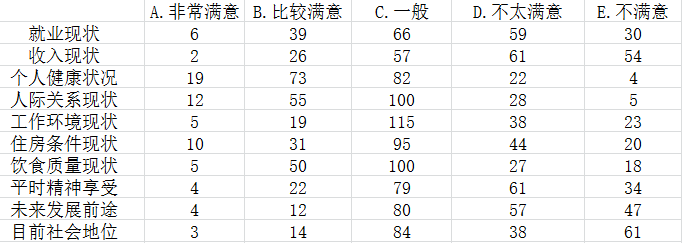 表3.厂矿工人生活满意度调查表