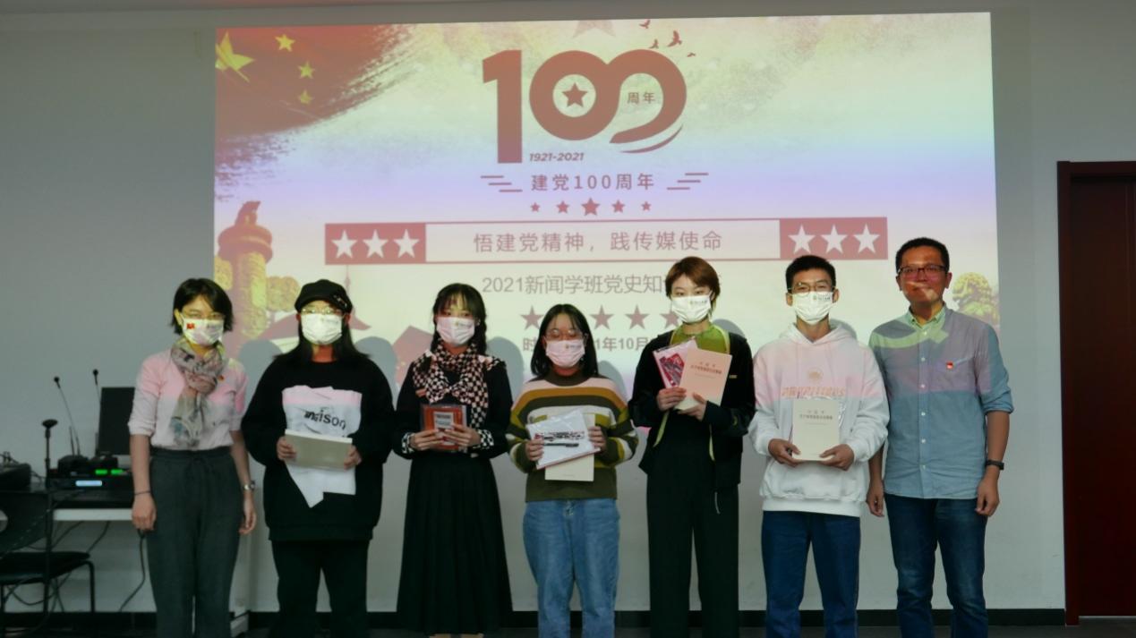 竞赛过程中,参赛员工准备充分、积极答题,现场氛围活泼热烈。通过评分,比赛决出前三名,并由辅导员郭晓歌老师、班主任柳帆老师向获奖团队颁发《马克思主义新闻观十二讲》《中国共产党简史》《习近平新闻思想讲义》等党史教育读本和学习用品。