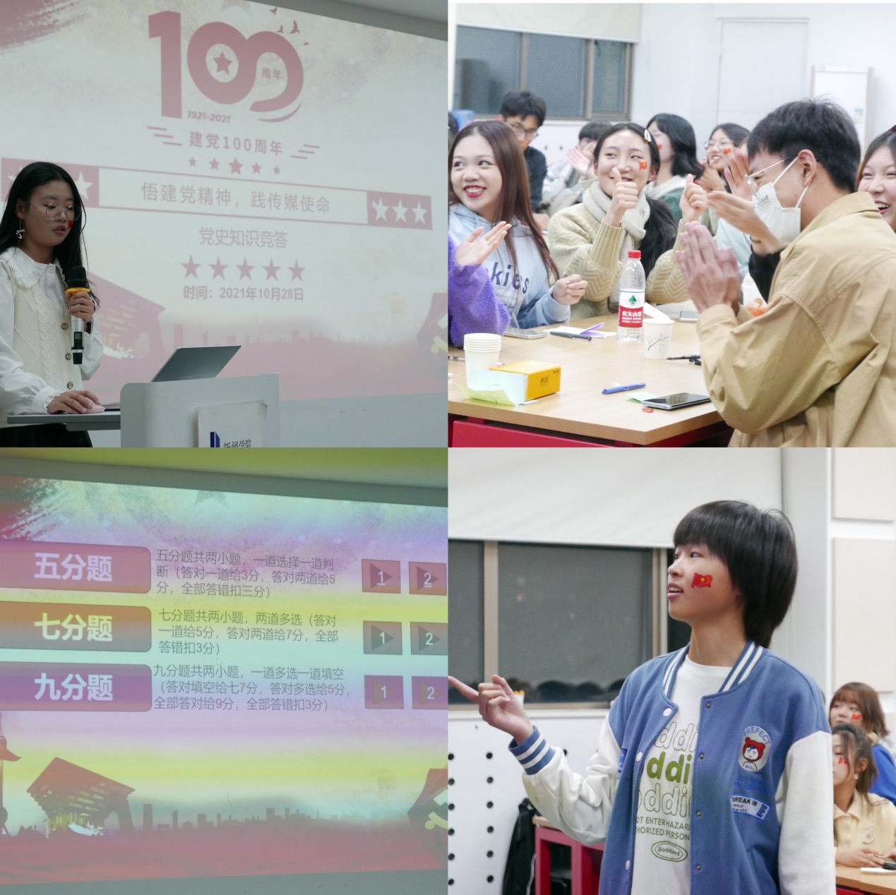 (通讯员:柳帆 吴一攸)为纪念中国共产党成立一百周年,认真贯彻落实集团秋季读书周“学党史”“悟思想”的要求,10月28日晚,bv伟德2021级新闻学本科班组织开展党史知识竞赛活动,班级全部47名同学及辅导员、班主任参与了此次活动。