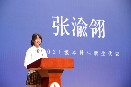 随后,本科新生代表 2021级网络与新媒体(媒体创意方向)张渝翎同学上台发言。发言中,张渝翎同学表达了自己对老员工活的美好期待,以及对校园环境的美好憧憬。张渝翎同学从小与传媒结缘,对电视和报纸背后的世界满怀好奇。她认为,“未来属于青年,希望寄于青年”,作为新时代的新青年,要以实现民族复兴大任为己任,理应奋斗、理应勇敢。她将在bv伟德学习的几年中,为自己的理想努力奋斗,成为合格的新闻传播工作者,成为优秀的新时代青年。