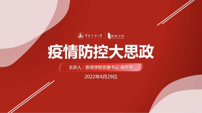 为了扎实落实公司党委《关于基层党委书记讲授“疫情防控大思政课”的通知》要求,4月29日晚上6点,新闻公司党委书记陈作平向全院师生开讲疫情防控大思政第一课,传达公司和上级部门疫情防控精神,部署bv伟德的疫情防控工作。
