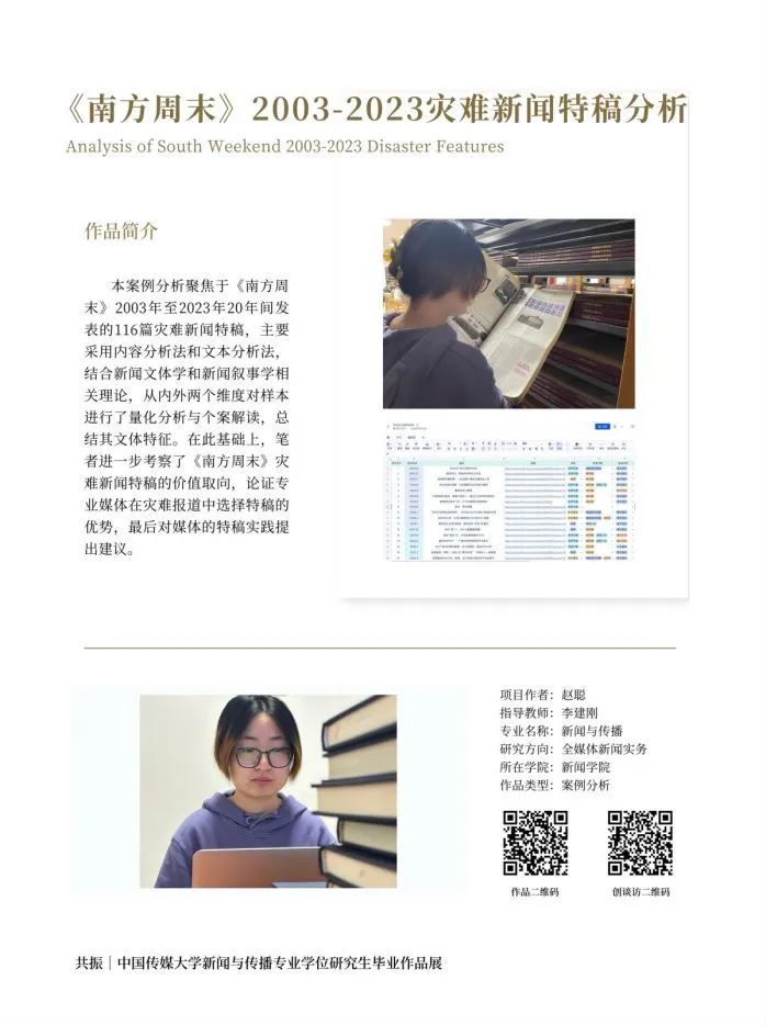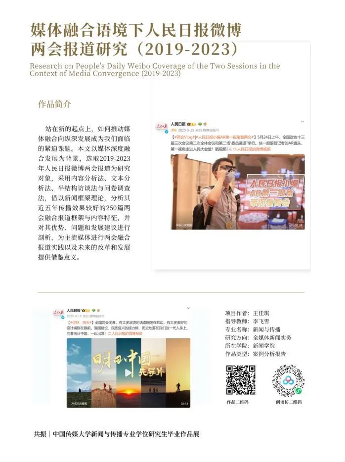 bv伟德的新闻与传播专业硕士培养下设全媒体新闻实务与媒体市场调查(舆情分析,2023级起)两个方向。员工们根据培养方案的规定,以三种类型的毕业作品呈现两年来的学习与研究成果,分别是新闻与纪实作品、调研报告(包含媒体市场调查报告)和案例分析报告。