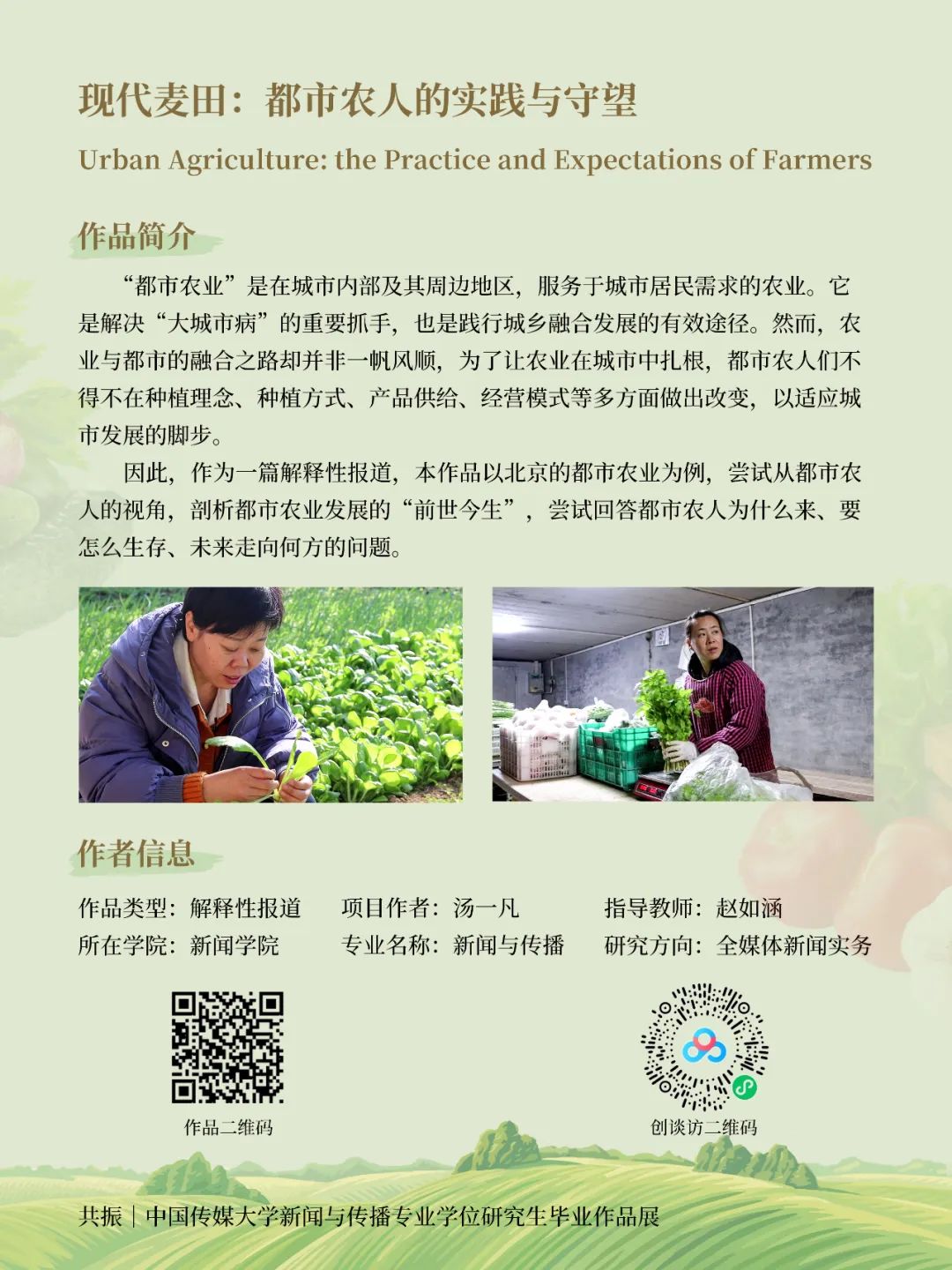 因此作为一篇解释性报道,本作品以北京都市农业为例,从都市农人的视角剖析都市农业发展的前世今生,尝试回答都市农人为什么来、要怎么生存、未来走向何方的问题。