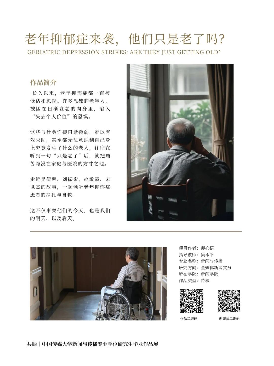 走近吴倩蓉、刘振影、赵敏霞、宋世杰的故事,一起倾听老年抑郁症患者的挣扎与自救。这不仅事关他们的今天,也是我们的明天,以及后天。