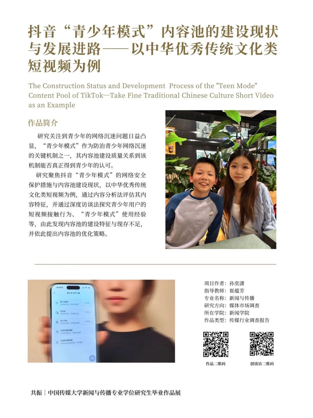 研究聚焦抖音“青少年模式”的网络安全保护措施与内容池建设现状,以中华优秀传统文化类短视频为例,通过内容分析法评估其内容特征,并通过深度访谈法探究青少年用户的短视频接触行为、“青少年模式”使用经验等,由此发现内容池的建设特征与现存不足,并依此提出内容池的优化策略。
