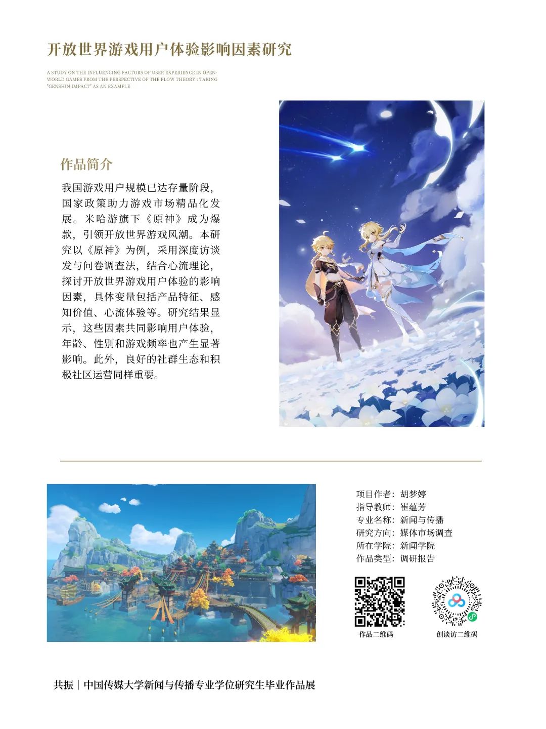 我国游戏用户规模已达存量阶段,国家政策助力游戏市场精品化发展。米哈游旗下《原神》成为爆款,引领开放世界游戏风潮。本研究以《原神》为例,采用深度访谈与问卷调查法,结合心流理论,探讨开放世界游戏用户体验的影响因素,具体变量包括产品特征、感知价值、心流体验等。研究结果显示,这些因素共同影响用户体验,年龄、性别和游戏频率也产生显著影响。此外,良好的社群生态和积极社区运营同样重要。