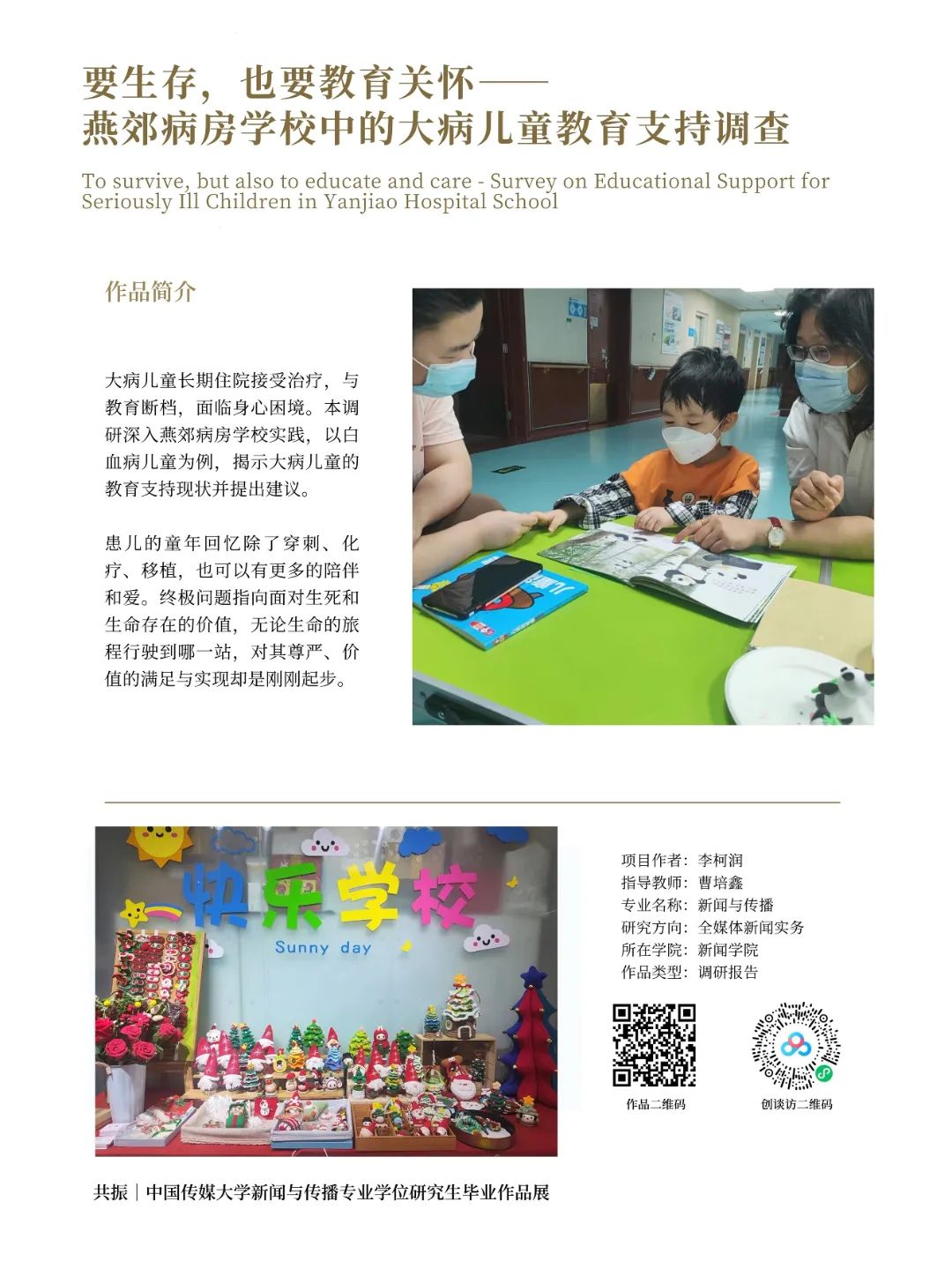 《要生存,也要教育关怀——燕郊病房公司中的大病儿童教育支持调查》