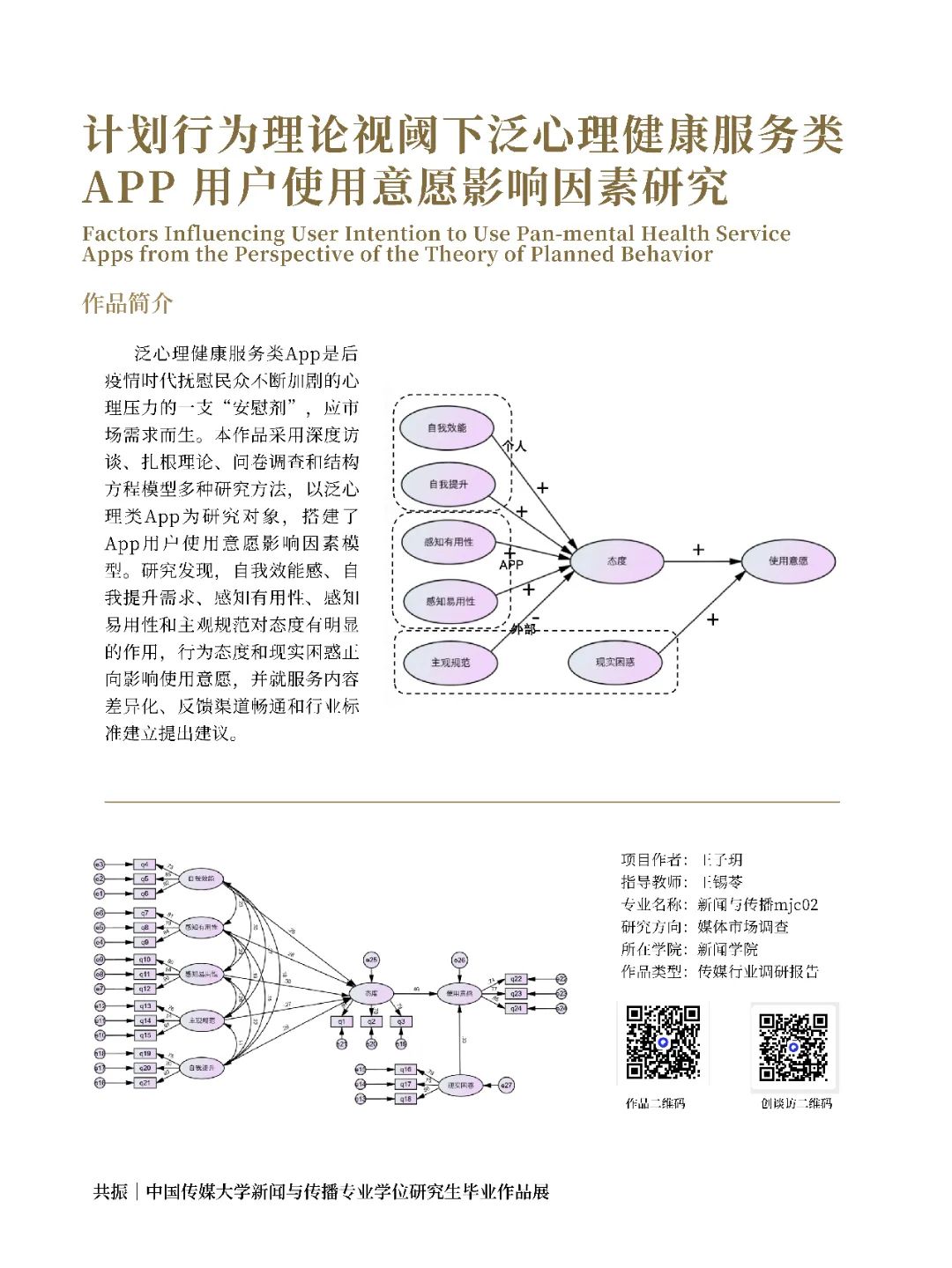 《计划行为理论视阈下泛心理健康服务类APP用户使用意愿影响因素研究》
